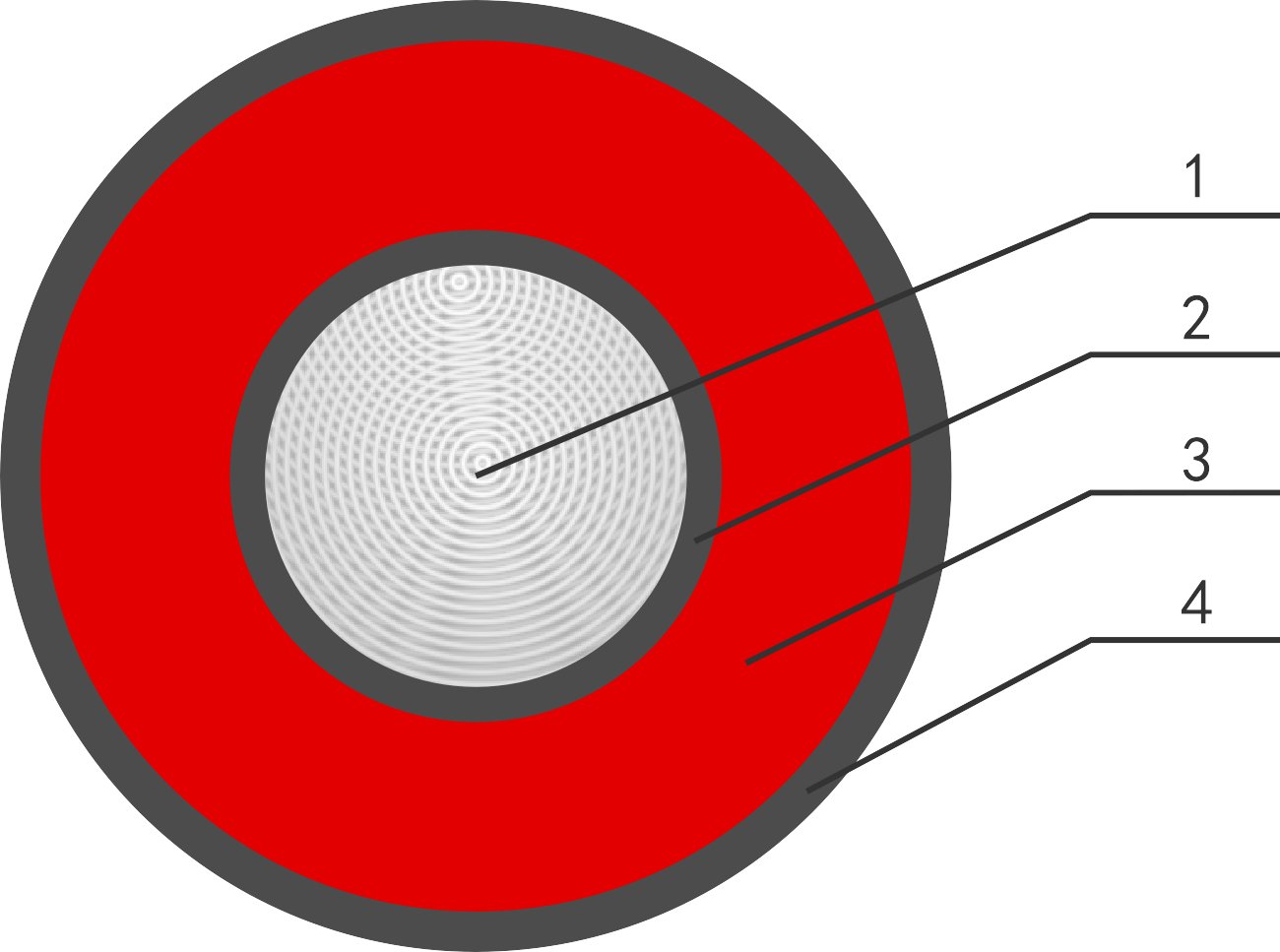 1: 鍍錫銅導體 2.導體屏蔽 3.乙丙橡膠絕緣 4.可剝離絕緣屏蔽
