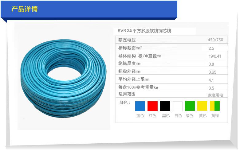 漢河電纜電線 BVR2.5 多股銅芯線軟線 200M每盤