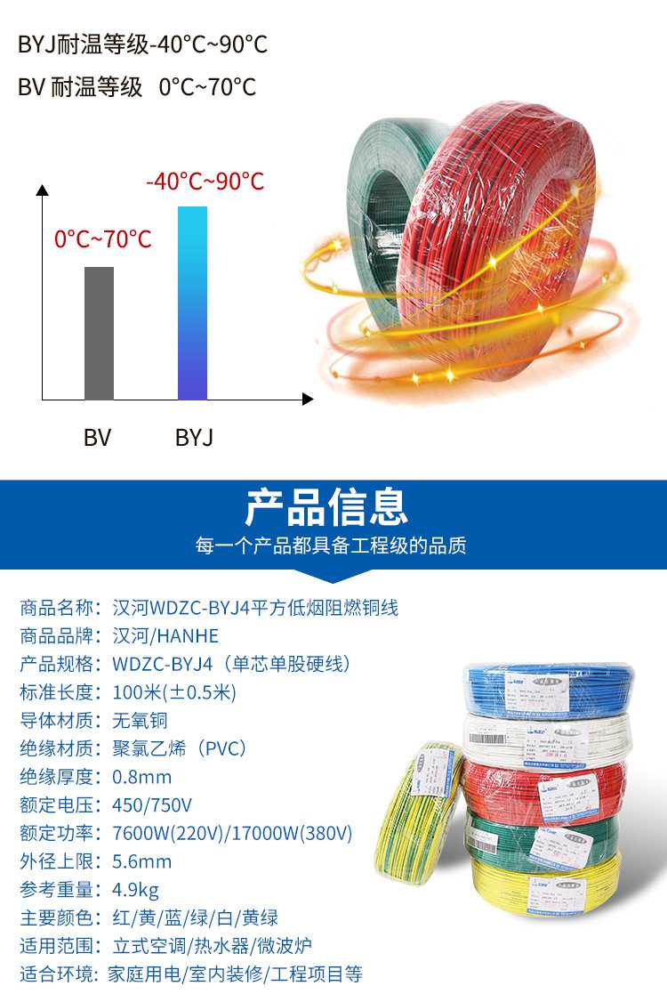 漢河電線低煙無鹵阻燃C級電線WDZC-BYJ4mm2家裝商業消防用線